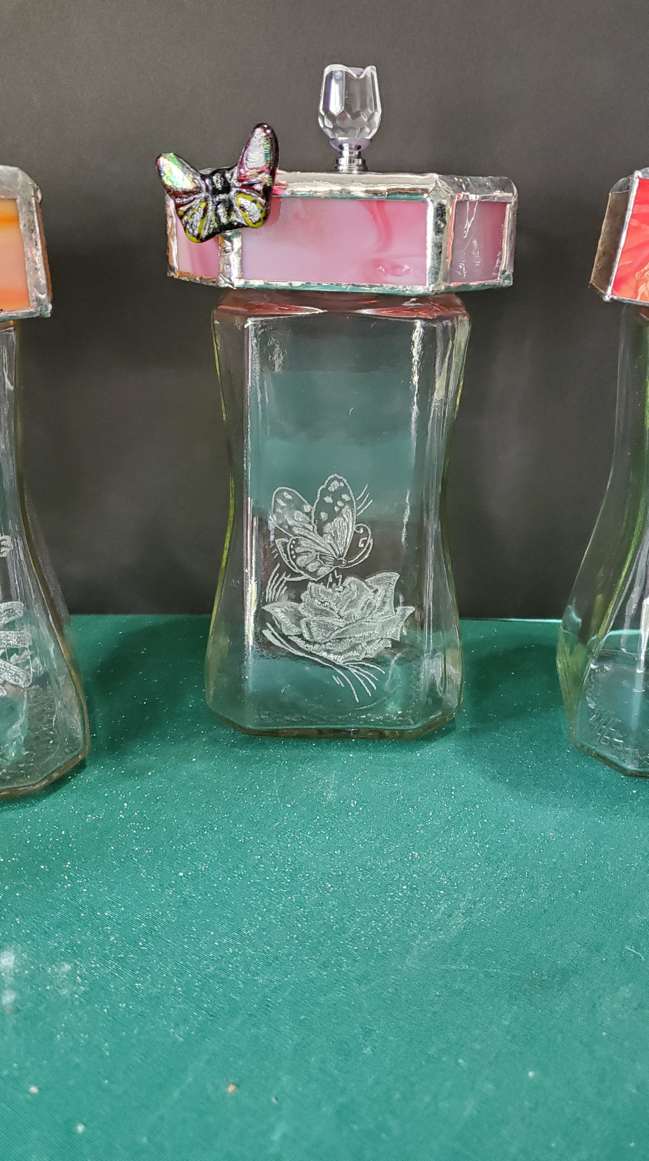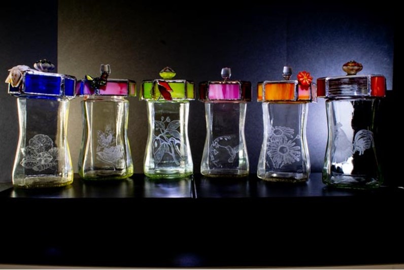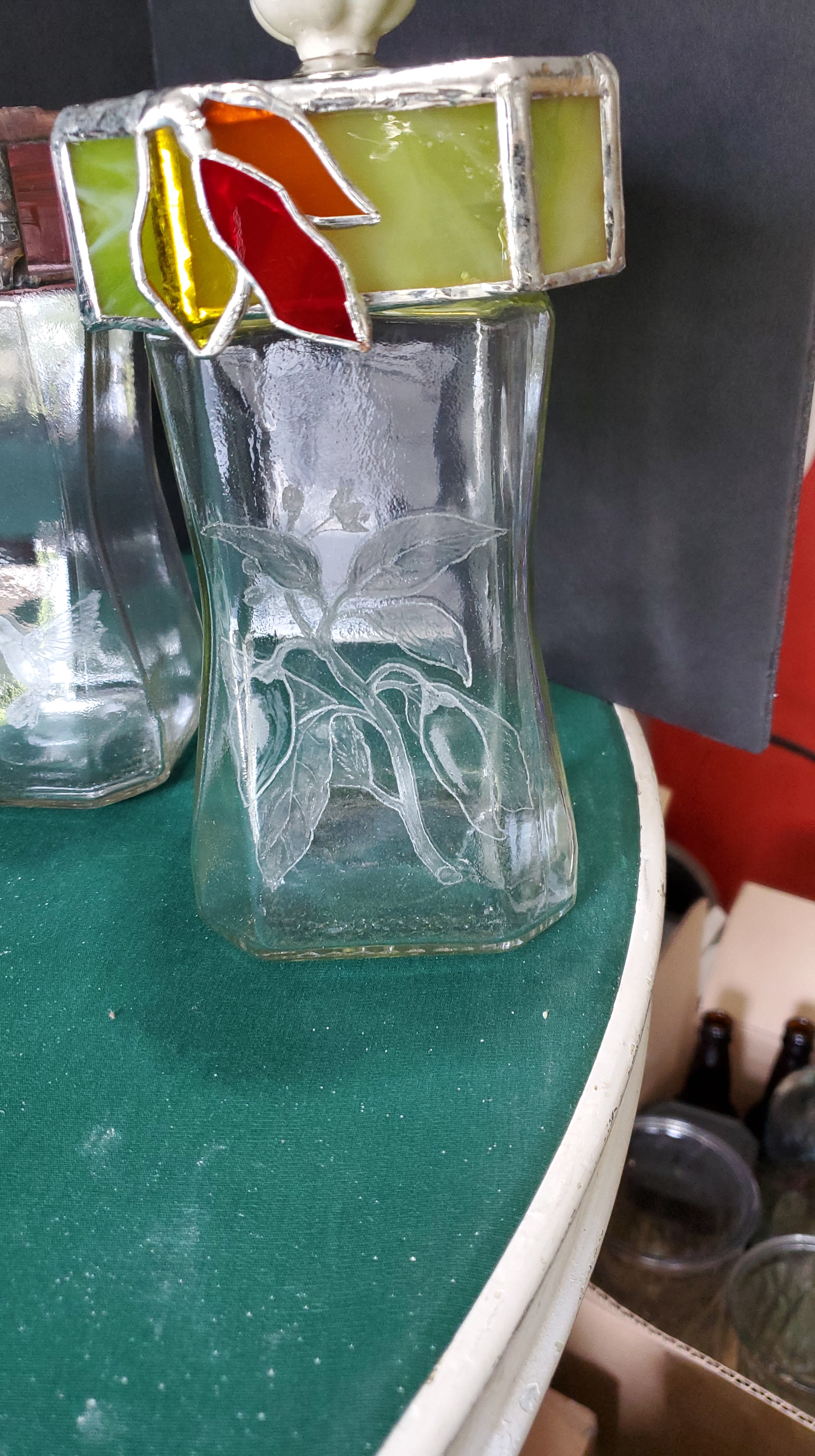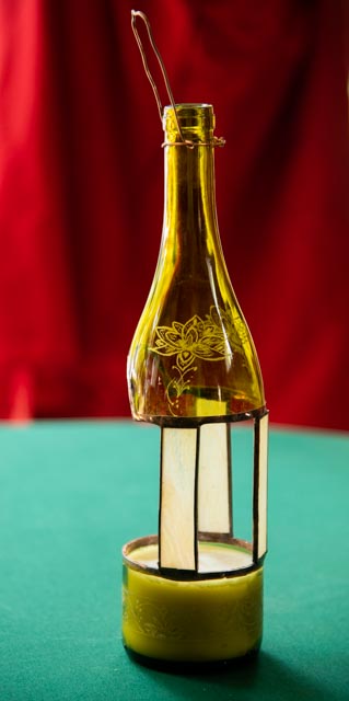 What I have produced so far is shown below. I have enjoyed combining stained glass and engraving to create what I think are unique projects. When I can successfully cut a bottle, it does get made into something fun.